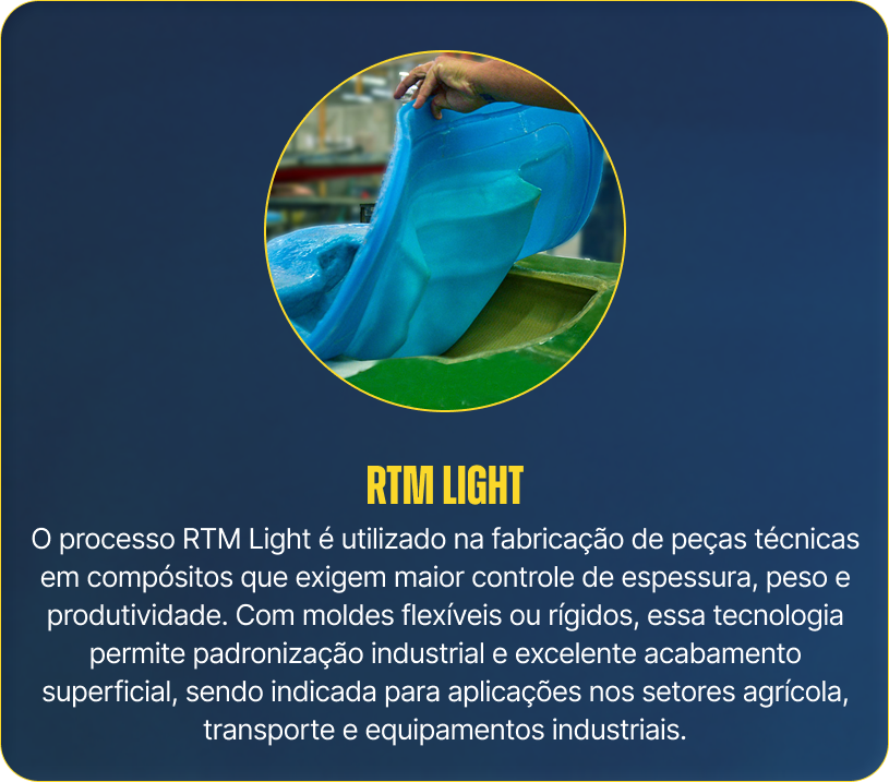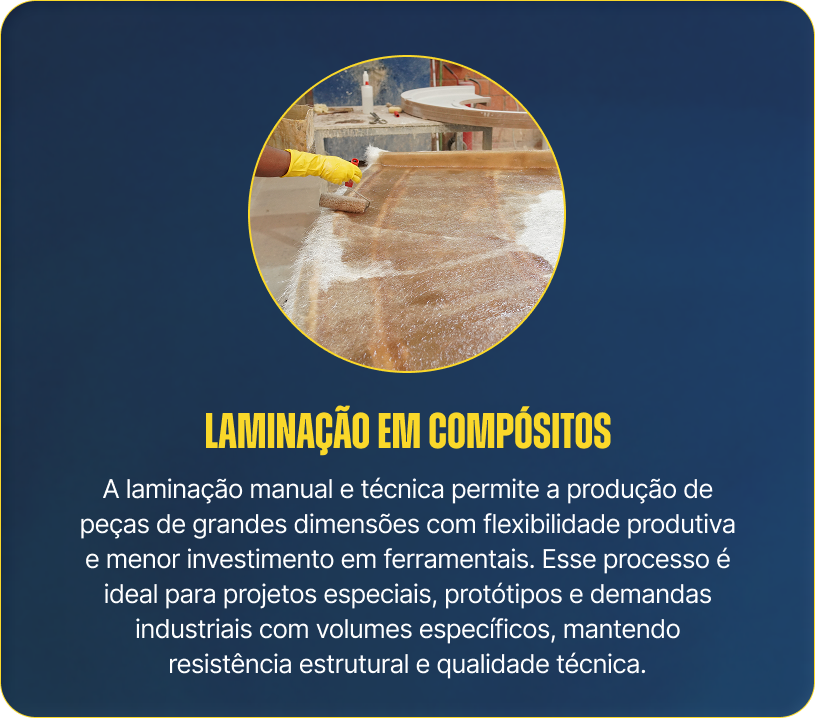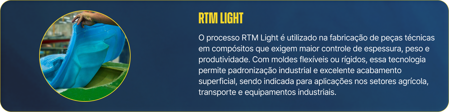 Atendemos empresas dos segmentos agrícola, automotivo, energia, transporte, infraestrutura e máquinas industriais, oferecendo soluções que vão desde o desenvolvimento até a produção final de peças técnicas em compósitos.